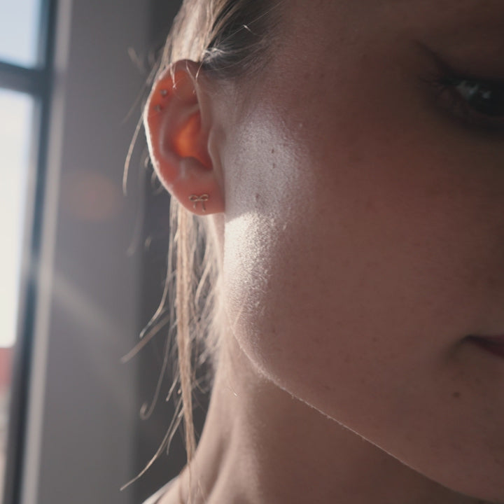 Flirty and feminine, this petite pair of stud earrings adds a coquette charm to your collection. Featuring tiny bows and a polished finish, this ultra giftable set has the timeless touch that ties your look together beautifully.