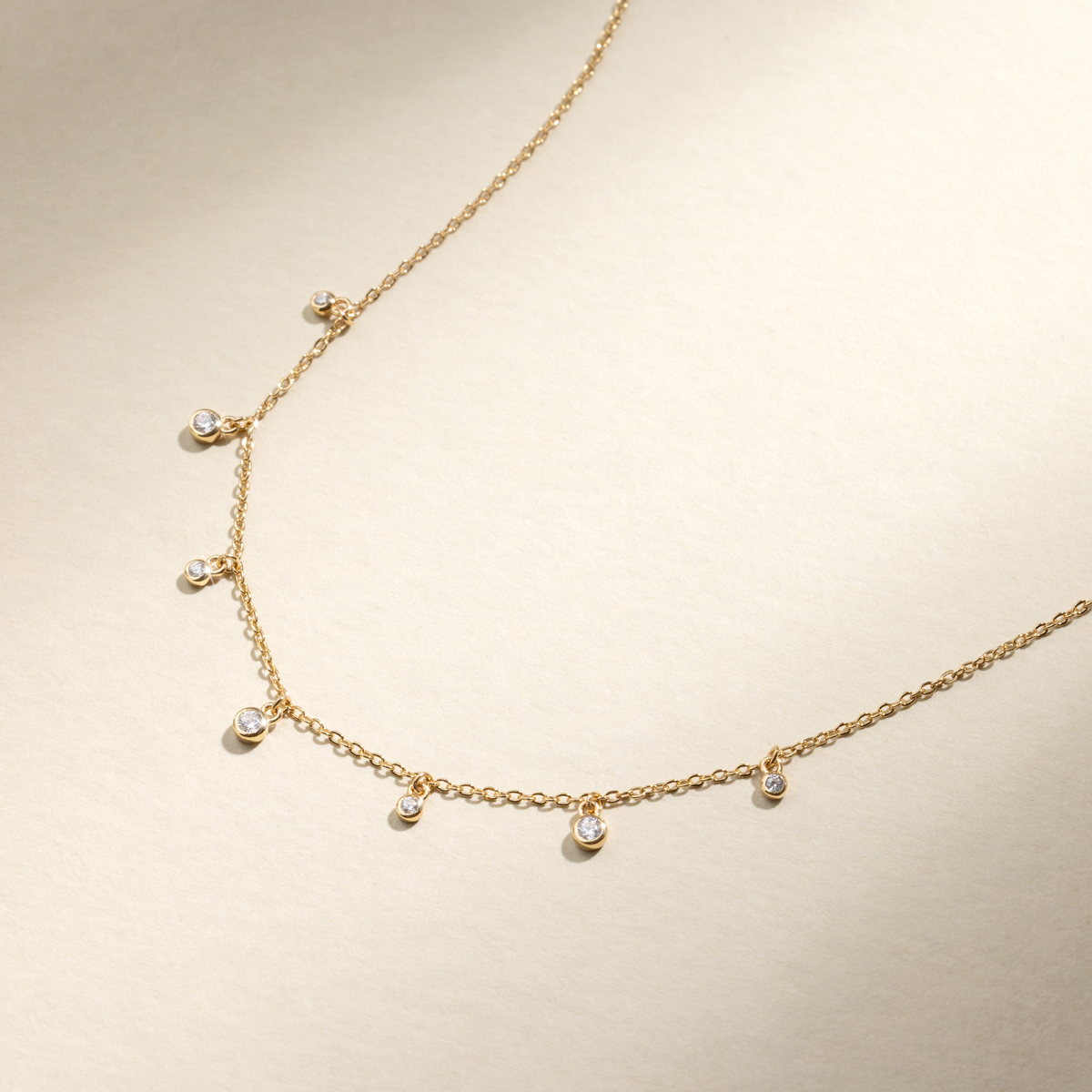 This barely-there necklace features a delicate strand of spaced-out CZs that seem to float effortlessly along your neckline. Simple, elegant, and just the right amount of sparkle for your everyday ritual.