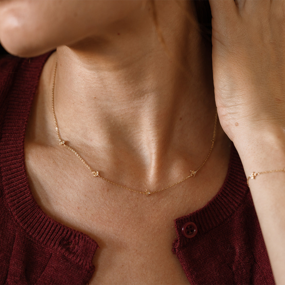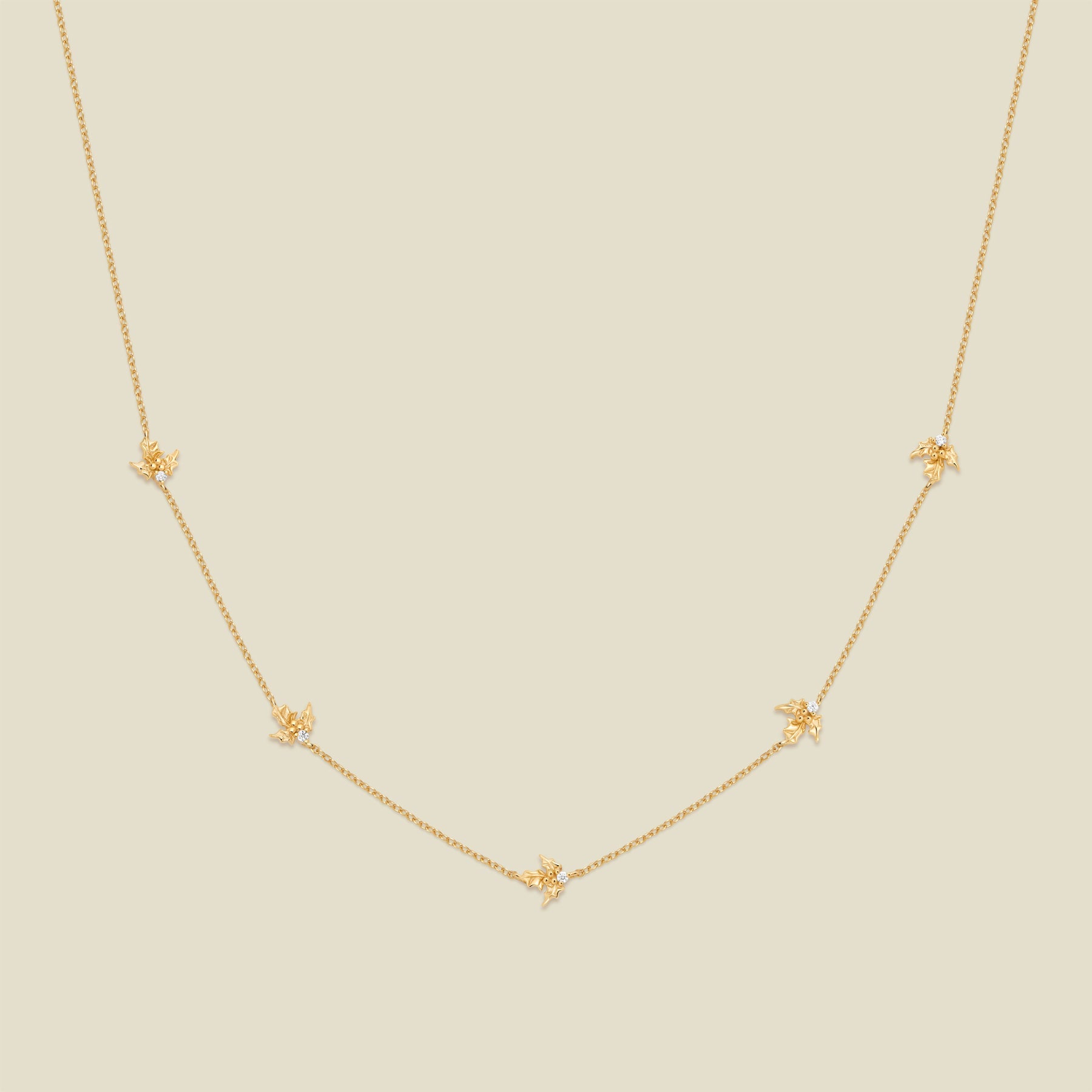 Your story, in bloom. This dainty necklace features lifelike December holly silhouettes set with subtle CZ sparkle for just the right amount of shine. Protective and strong, with the power to weather any storm, this necklace rests close to your heart as a symbol of resilience and grace. Elegant on its own or layered with your go-to pieces, perfect for marking a milestone or moment.