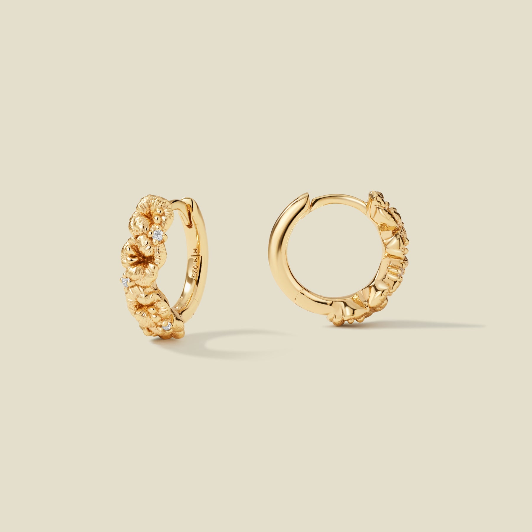 Catch the light, carry the meaning. These huggies feature lifelike February violet silhouettes, detailed with a subtle CZ sparkle. Kindness at the core, guided by wisdom and grounded in compassion, these earrings are lightweight and secure for all-day wear. A gentle reflection of the beauty that blooms from within.