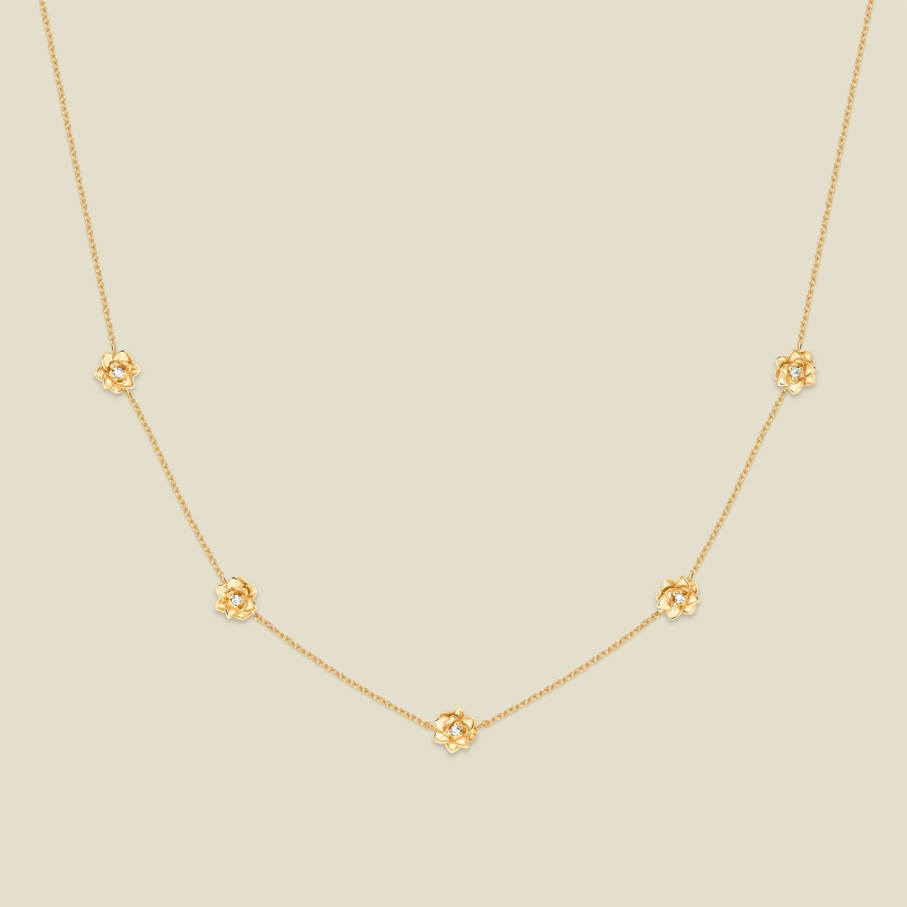 Your story, in bloom. This dainty necklace features lifelike July lotus silhouettes set with subtle CZ sparkle for just the right amount of shine. Rooted in resilience and blooming into quiet power, this necklace symbolizes the strength that rises from within. Elegant on its own or layered with your go-to pieces, perfect for marking a milestone or moment.