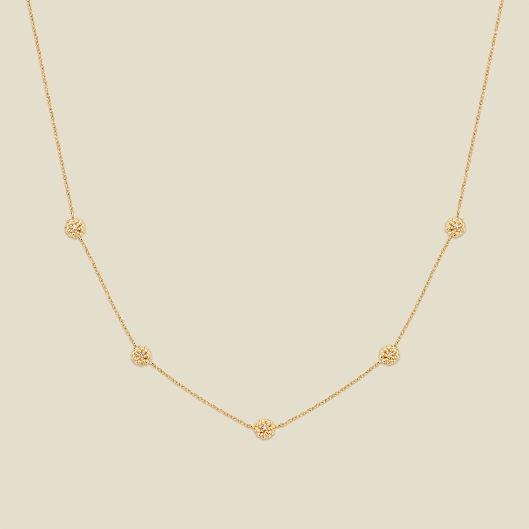Your story, in bloom. This dainty necklace features lifelike October marigold silhouettes set with subtle CZ sparkle for just the right amount of shine. Passionate, nurturing, and always there for your people, this necklace glows with the same warmth and energy you share with those you love. Elegant on its own or layered with your go-to pieces, perfect for marking a milestone or moment.