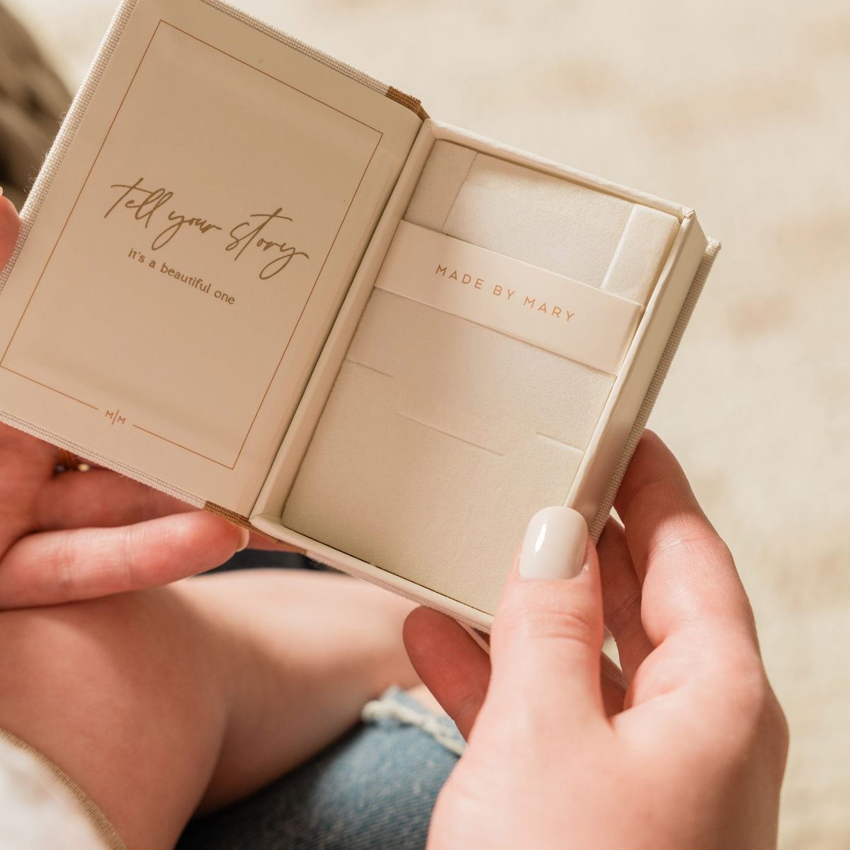 Delivered from the Made by Mary studio in a giftable book-style box, each piece is carefully crafted with your story in mind.