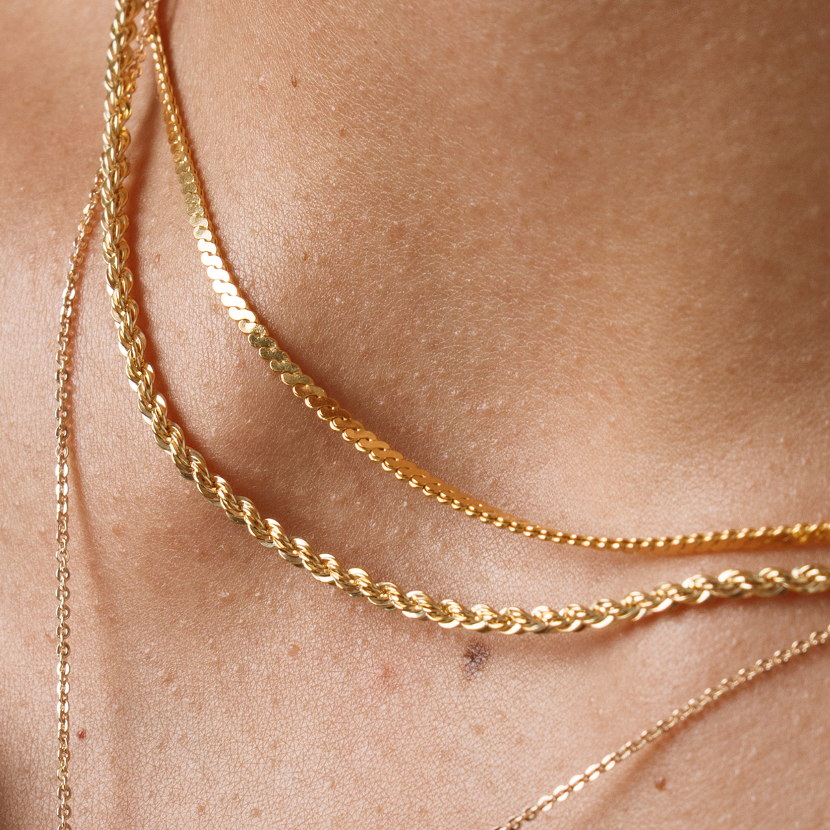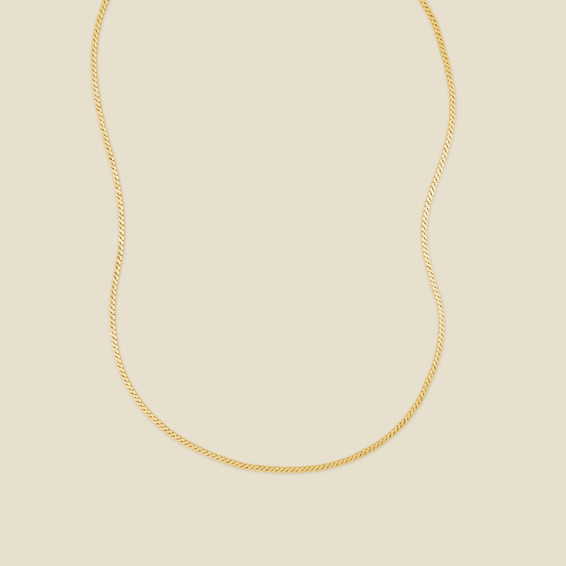 A smooth and subtle glow-up. The Serpentine Chain Necklace drapes like liquid gold across your collarbone, catching the light in all the right ways. It’s the kind of piece that elevates every outfit effortlessly.